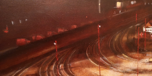 By the time I learned how to paint the railway lines, I had already finished most of them. I simply chose the wrong strategy. I chose to paint them via the shape of the tones. Yes, the lines began to take form but they lacked the elegance that I could see could have been possible. I really may return to this an repaint the whole railway area. I should have taken a more basic approach. Paint the centre of the railway track, then paint the actual tracks either side to establish their respective positions to each other, then add and over paint the areas that I need to reflect the original image. I could also do this in an impressionist style quite easily… Oh well… I’ll settle with how it is…Maybe will get round to revising it at a later date….Yeah right… Nothing so permanent as a temporary solution! Eh!